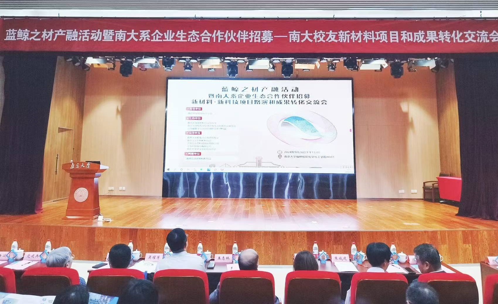 9月26日下午,在南京大學化學化工學院報告廳舉行了“藍鯨之材產融活動暨南大系企業生態合作伙伴招募-南大校友新材料項目和成果轉化交流會”。